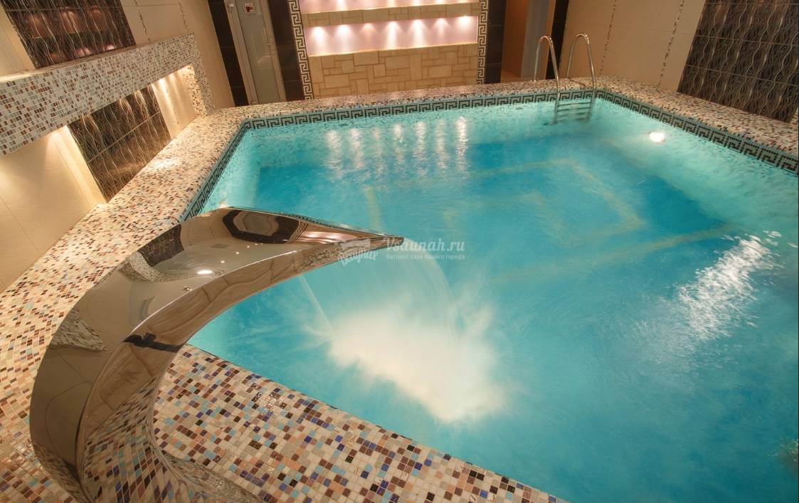 Бассейн, Размеры (Ш x Д x Г), м: 6 x 5 x 1.5, Теплый бассейн, Водопад, Подсветка,